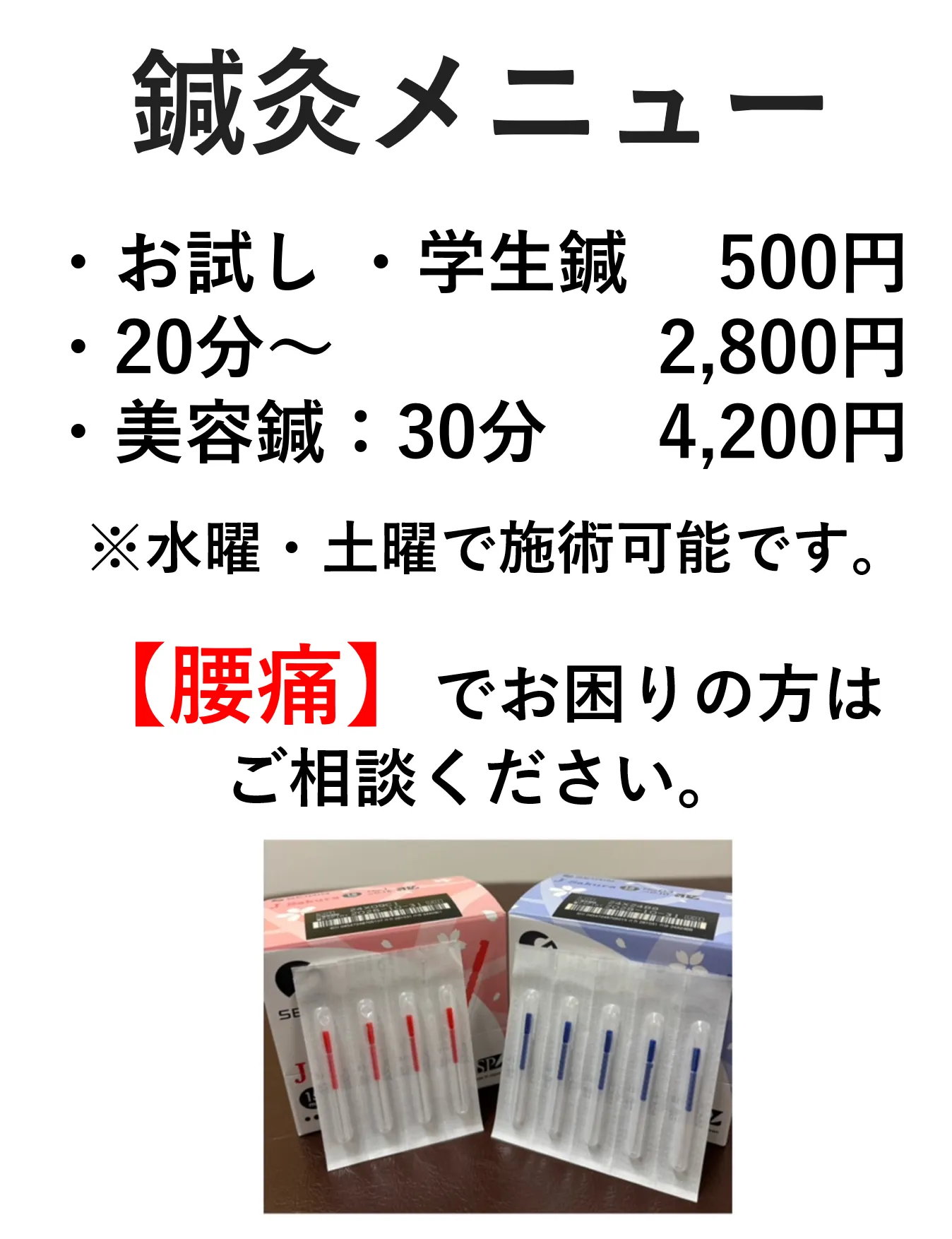 水曜・土曜限定で鍼灸施術ができるようになりました💪